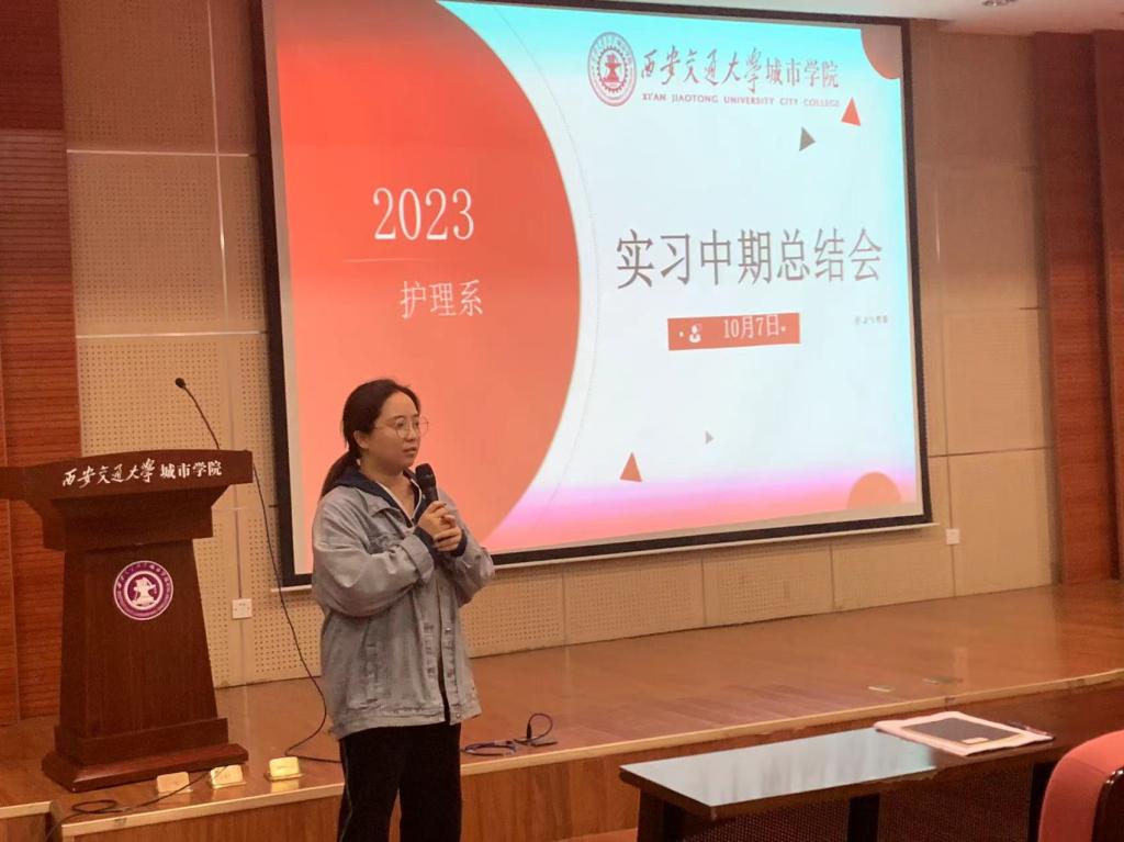 会上,李老师总结了同学们上半年实习工作的情况,分析并讲解了实习工作目前存在的问题,强调了护士工作的重要性和护士实习的注意事项。帮助学生们在以后实习护士的道路上树立自信心,规划并做好每一个步骤,使学生在实习工作中能够得心应手。之后,四位学生代表依次上台,分别讲述了自己在实习中的体会和经历,与同学们交流分享了各自的经验。