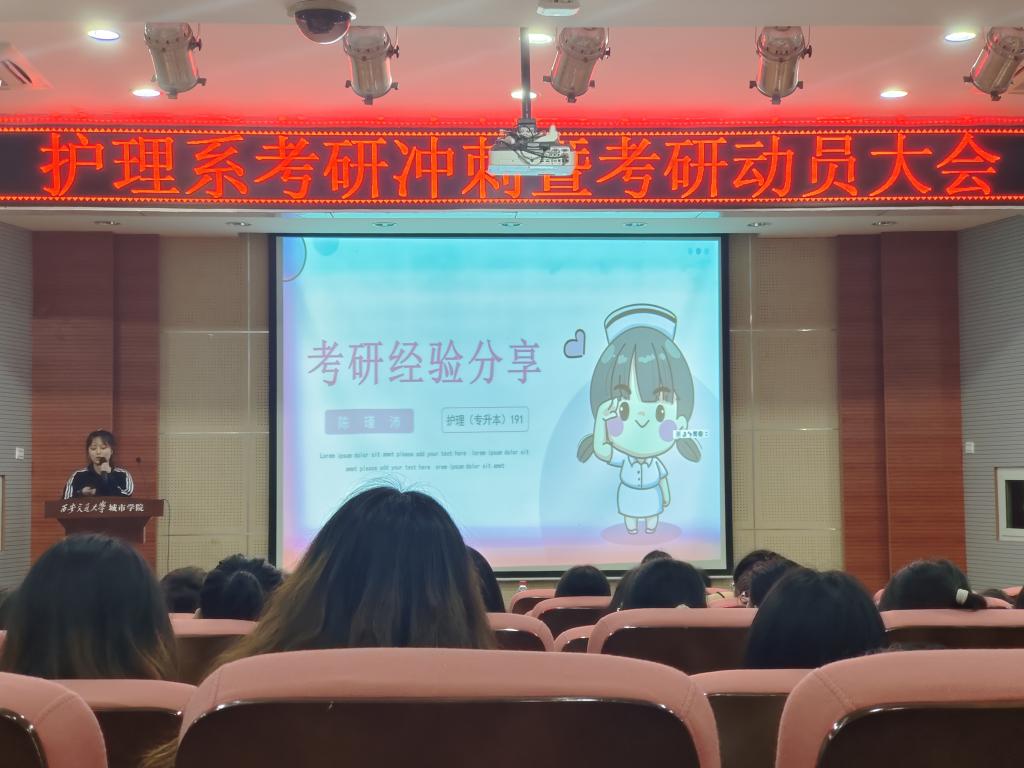 为进一步帮助学生正确认识考研形势,助力护理系学子成功上岸。10月11日,护理系召开了考研冲刺暨考研动员大会。本次大会由护理系赵宏霞老师、齐亚楠老师以及2021届优秀毕业生代表陈瑾沛同学为考研学子答疑解惑。