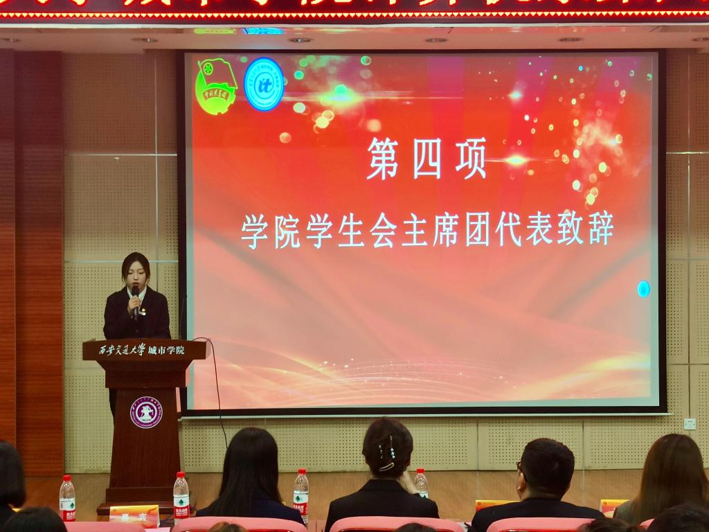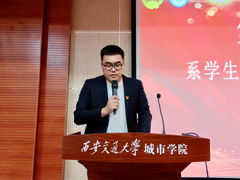 最后,崔佳楠老师向筹备并出席本次大会的各位老师、学生骨干及全体学生代表们表示感谢,对我系学生会工作及广大学生干部的辛勤付出予以肯定,对大会的召开表示祝贺。同时对全院学生干部和广大青年提出三点要求:一是要坚持党的领导,做好厚植理想信念的表率;二是要紧扣时代主题,做好主动担当作为的榜样;三是要牢记服务宗旨,做好温暖服务同学的品牌。
