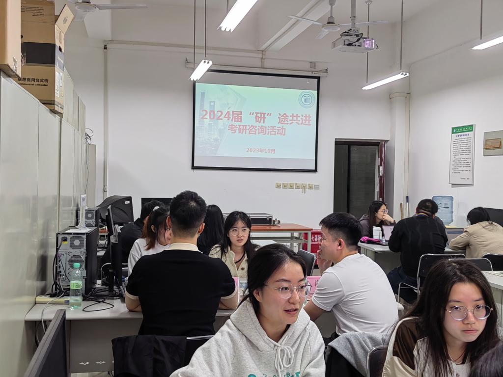 为切实做好考研指导工作,增进广大学生对考研相关事宜的了解,帮助同学们了解考研择校时的准备信息,增强备考学子的信心,管理系于10月17日下午在教二302举办了“研”途共进考研咨询活动。