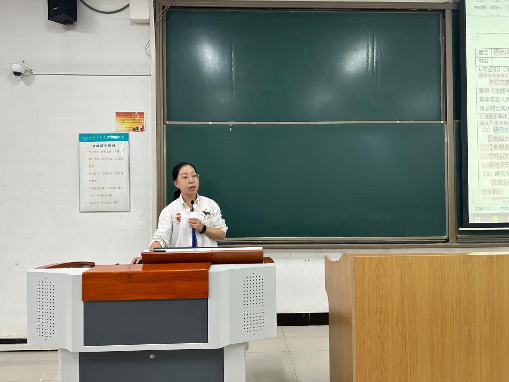 网媒专业教师刘青对任务书和开题报告的写作进行讲解。刘老师选用优秀毕业生任务书及开题报告作模板进行批注,用“保姆级攻略”为学生逐项拆解各部分内容的撰写方法、格式要求以及容易忽略的标点、编码使用方法。整体准备充分,内容细致,为学生解决了写作中的细节问题。
