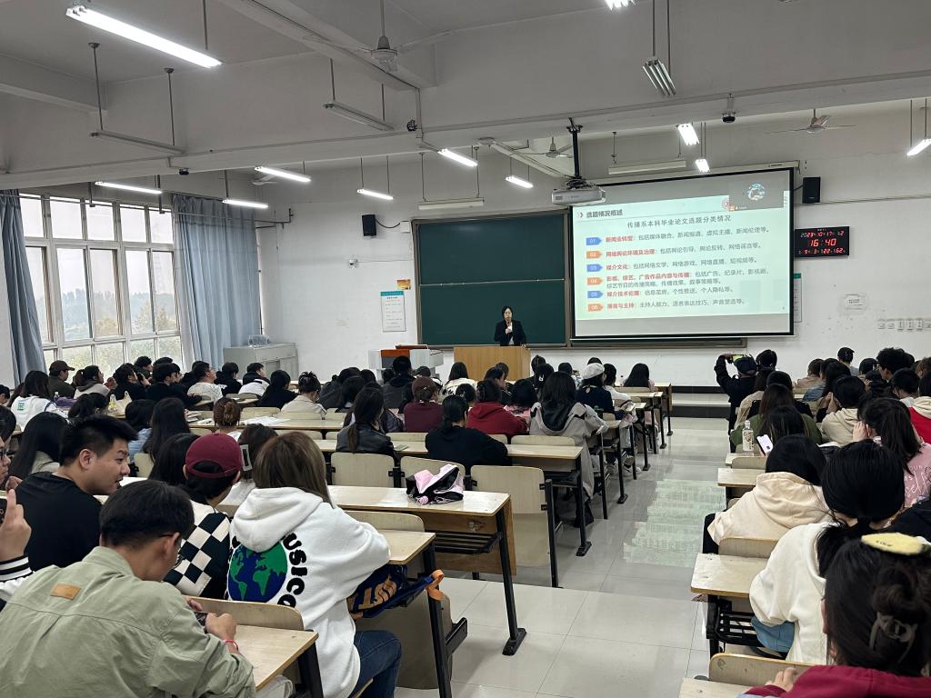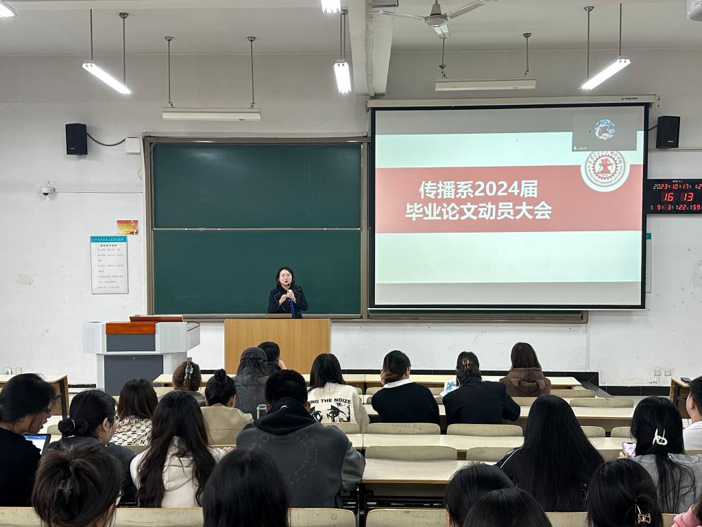 10月17日下午,传播系召开2024届毕业论文动员大会。传播系吴越副主任、全体论文指导教师出席会议,传播系2020级全体毕业生线上线下参会,线下150余人到会,会议由主任助理马岚主持。