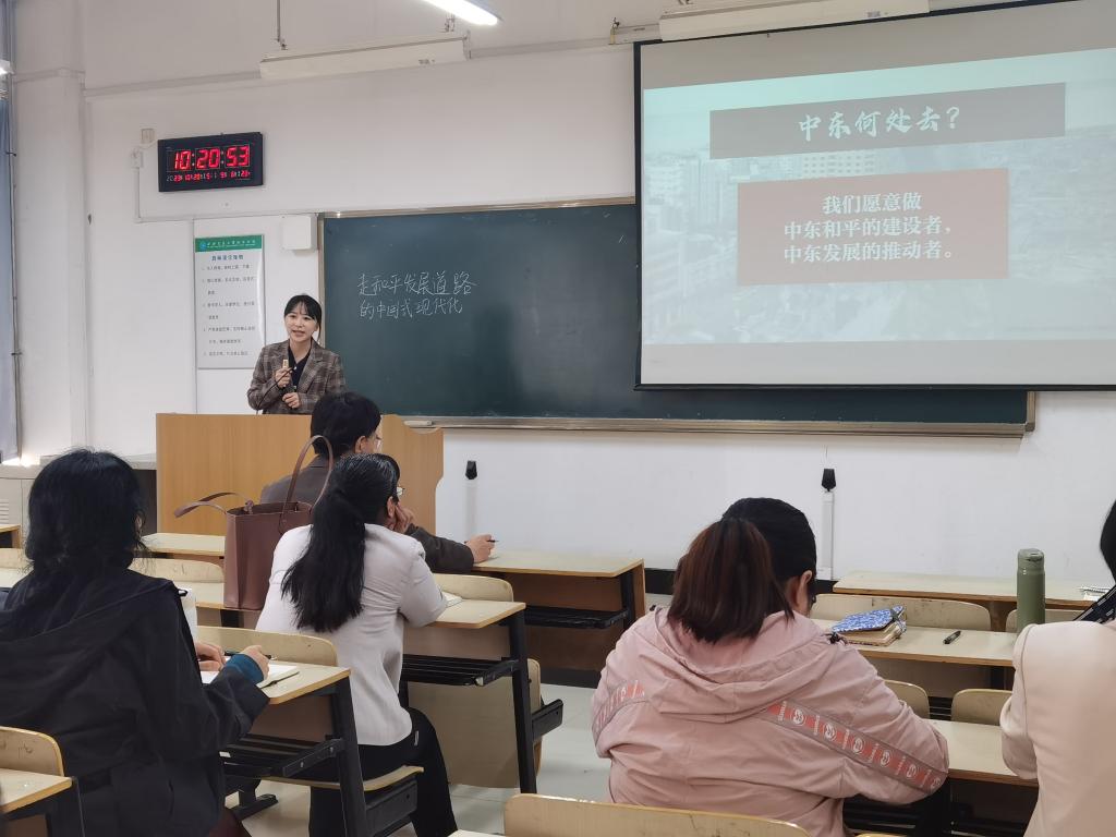 此次为李丹丹、刘秋鸽两位教师进行教学展。李丹丹以“走和平发展道路的中国现代化”为题,从“为什么走”以及“怎么走”两方面进行了深入浅出的讲授。刘秋鸽以“国共两党携手革命”为题,以国共第一次合作为历史背景,分别从理论逻辑、现实逻辑和实践逻辑三个方面进行了讲述。