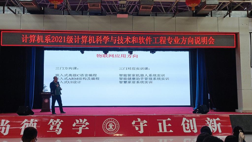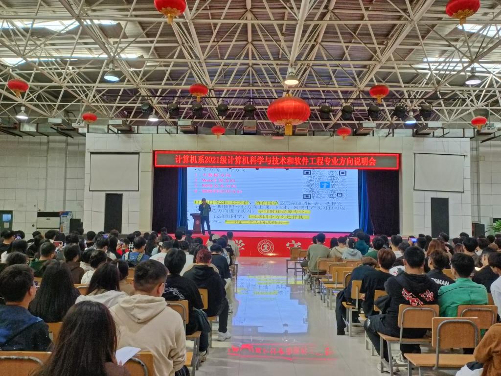 为进一步做好2021级计算机科学与技术、软件工程专业学生对专业方向的认知,提升人才培养质量,引导学生做好职业规划,保障专业方向分流工作高效有序开展,yl7703永利官网计算机系于11月2日在大学生活动中心召开2021级计算机科学与技术专业、软件工程专业方向说明会,计算机系副主任许大炜,学生工作负责人崔佳楠以及2021级辅导员出席本次大会,2021级计算机科学与技术和软件工程专业全体同学参加本次大会。大会由许大炜副主任主持。