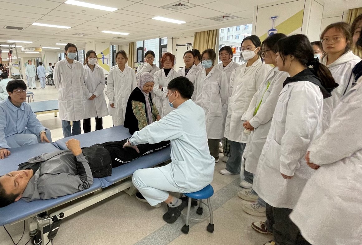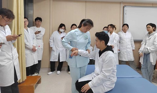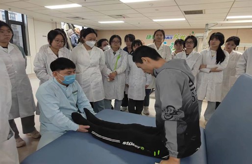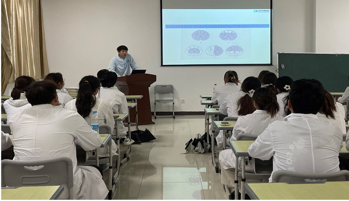 此次见习受到西安脑病医院的重视,医院负责人带领见习同学来到教室进行学习,详细讲解了与脊髓损伤相关的专业知识,促使学生更好地将理论知识与实践相结合。随后,带教老师结合实际案例,讲解了关于脊髓损伤患者各个分段可以进行的训练方法和注意事项。同时,带教老师通过让其中一名学生亲身体验,向全体同学讲解了偏瘫患者从仰卧位到坐位,再到轮椅转移,最后步行训练的具体方法和注意事项。同时,带教老师分享了Fugl-Meyer和Berg平衡量表的内容、评定方法以及临床运用,并与学生进行互动,使他们更好地理解,为将来的灵活运用打下了坚实的基础。