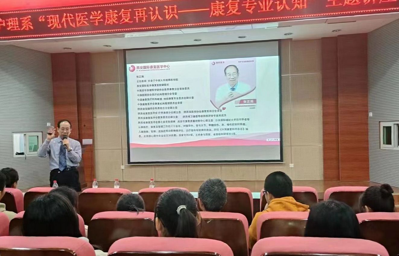 yl7703永利官网护理系于11月6日举办了一场题为“现代康复医学的再认识”的讲座,旨在增强学生对康复治疗学这门学科的认知。本次讲座邀请国际医学中心康复分院副院长张正湘为康复治疗学专业2023级学生讲解。护理系常务副主任王梅芳、护理系学生工作主管王娇丹、辅导员路凡以及护理系2023级康复治疗学专业全体学生参加了本次活动。