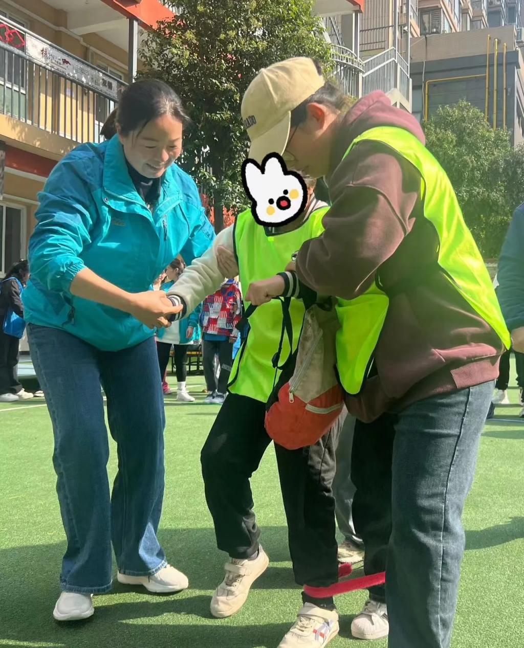 精彩的开幕式过后,志愿队员在负责人的分配下一对一与小朋友们参加运动会项目比赛,引导小朋友们进行袋鼠跳、扔沙包、50米短跑、拔河、三人两足等个人赛与团体赛。小朋友们在比赛中也展现出拼搏精神和团队协作能力。在活动的过程中,志愿队员在慢慢打消小朋友们抵触情绪的同时,积极引导小朋友勇敢跨出第一步。虽然一些小朋友的理解能力、语言表达能力不够清晰,但依然努力去理解项目要求,面带微笑,尽自己最大努力完成每一场比赛,不畏艰难,勇敢向前。