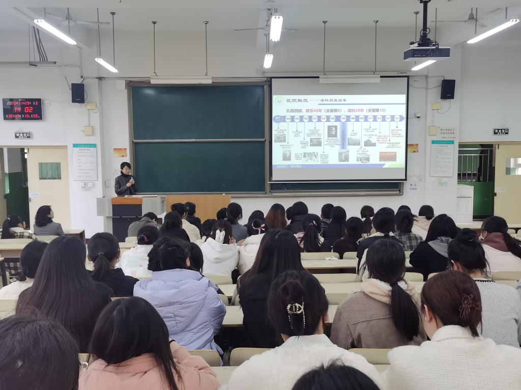 随后,胡志萍主任细化讲解了口腔专科护士的工作范畴、能力提升、职业发展以及职业价值,图文并茂地讲述了口腔医院各个岗位的职责和广阔的学习平台,向同学们展示了口腔医院以患者需求为中心的服务理念和以岗位需求为导向的工作理念,鼓励同学们积极就业,相信自己专业实力,展现自身专业素养。
