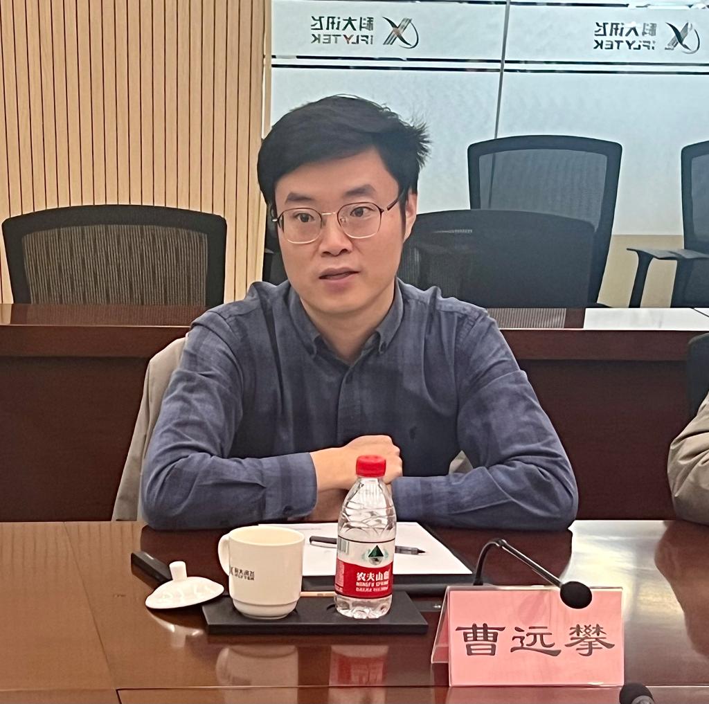 座谈会上,曹远攀经理代表科大讯飞欢迎我院一行的到来,希望能通过本次活动促进双方的紧密合作。曹经理介绍了科大讯飞的企业发展历程以及核心技术领域取得的卓越成就。他表示,讯飞高教一直以来秉持“技术赋能教育教学”的理念,努力寻求与学校携手探索产教融合发展的新路径,开拓校企合作新局面。