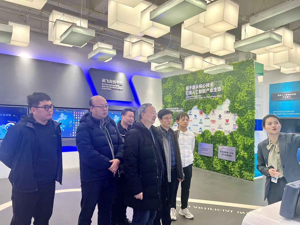 在科大讯飞丝路总部,大家首先参观了人工智能体验中心。体验中心讲解员为大家详细、全面地介绍了科大讯飞作为一家优秀的科技企业和大学生创业模范企业在语音合成、语音播报、即时机器翻译、智能会议、智慧医疗、智能教学等人工智能应用场景取得的技术突破,同时邀请大家亲身体会了科大讯飞各类产品。详细了解科大讯飞人工智能技术在教育、医疗、政法、办公、工业等多个场景的最新应用情况,以及讯飞星火认知大模型的最新成果展示。