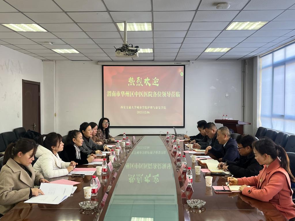 交流会上,李小妹院长对渭南市华州区中医医院各位领导的来访表示欢迎,王梅芳副院长和孙香林书记就学院和医院的基本情况分别进行了详细的介绍,双方就当前护理学及康复治疗学专业人才培养问题展开讨论,为推进实习基地建设、科研项目合作、校企课程共建等工作进行了细致对接。