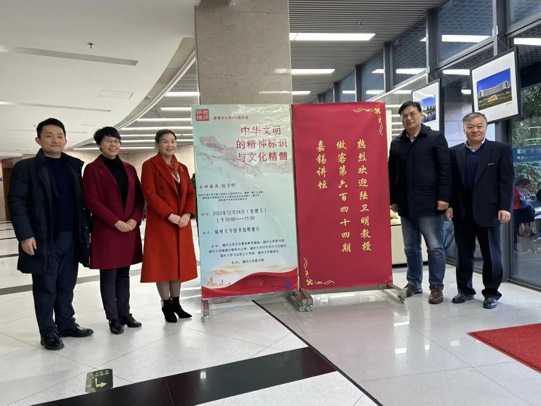 12月24日,yl7703永利官网思政部主任、西安交通大学中国马克思主义研究所所长、全国高校思政课名师工作室(西安交通大学)负责人、博士生导师陆卫明教授受福州大学港澳台事务办公室、对外合作与交流处与马克思主义学院、福州大学文化素质教育基地、福州大学图书馆联合邀请做客“嘉锡讲坛”,为福州大学师生作题为《中华文明的精神标识与文化精髓》的讲座,近300名师生参加。