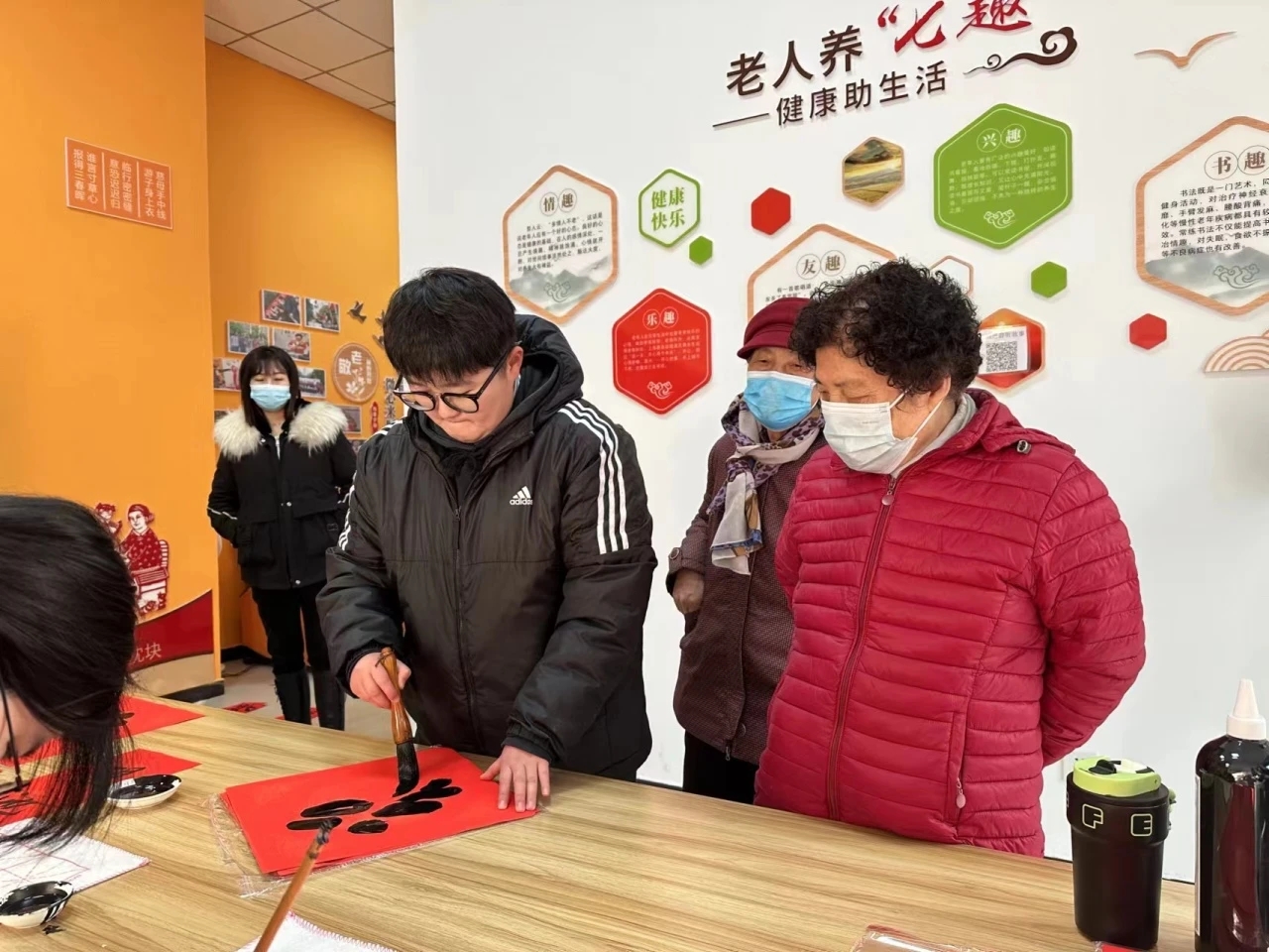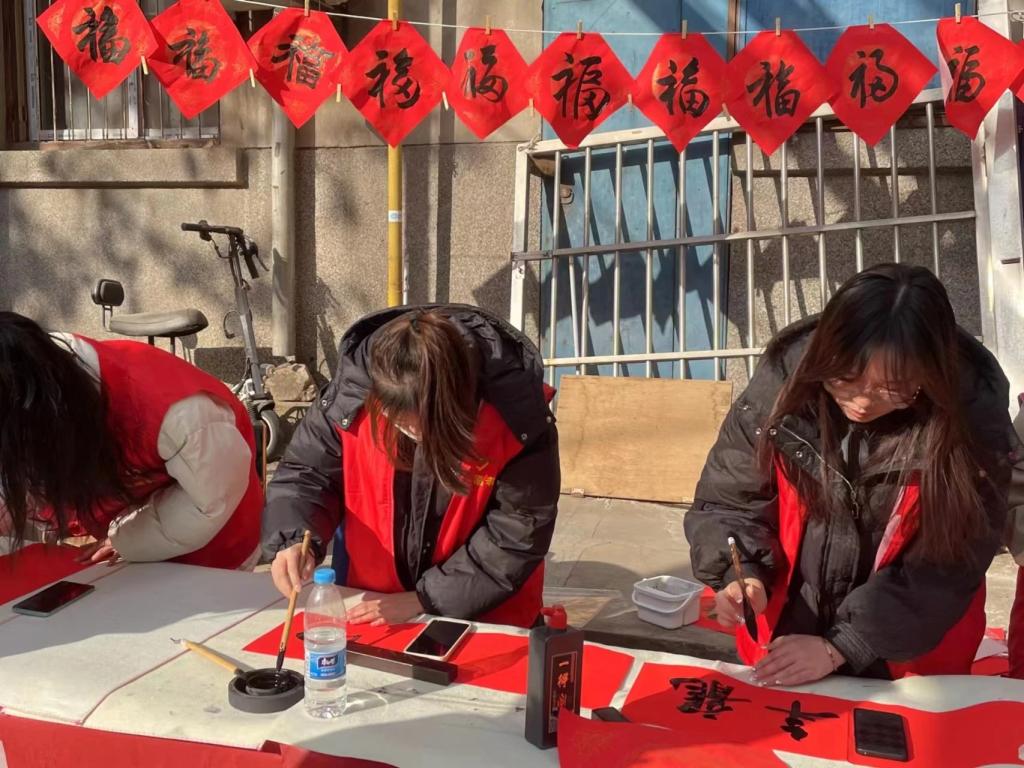 此次活动,以为社区居民写春联传递志愿者服务的精神,为社区居民带去新年新气象,并为即将到来的新年送上浓浓的祝福,春联、写福字,字里行间,真诚的祝福满溢于红纸上;黑墨红纸,呈现的是喜庆平安与吉祥。活动中,志愿者们尽情挥毫泼墨,一幅幅散发着墨香的“福”字跃然纸上,充满美好节日的祝福和对新春的憧憬。参与活动的居民围在桌前,传递着心仪的春联作品,志愿者们的热心与激情不仅是对新年的美好祝愿,更是对志愿者精神的生动展示。