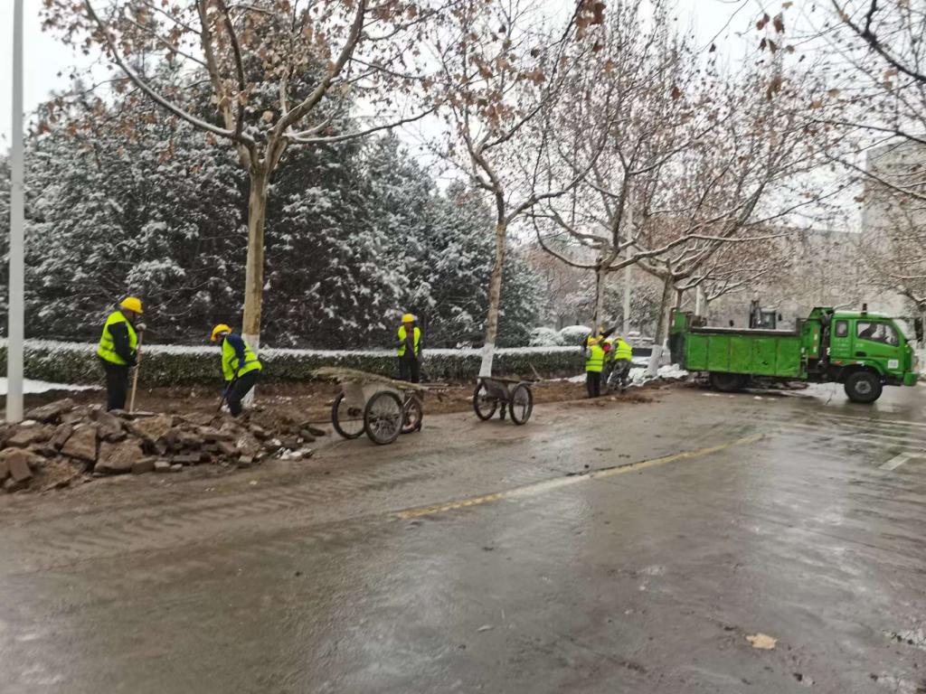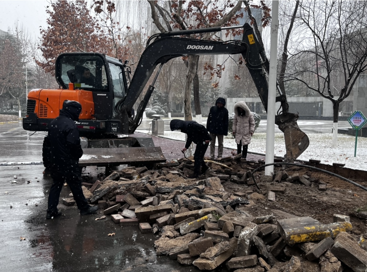 维修改造如期开工。根据学校工作安排,人行道维修工程今天迎着风雪正式开工,寒假期间维修工程将持续进行。同时学院节水改造项目、教二北广场绿化工程也将在寒假如期开展。