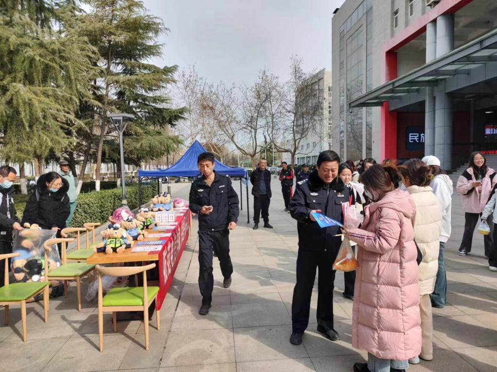 为进一步强化广大师生防范电信网络诈骗的意识和能力,营造“人人反诈、人人参与”的良好氛围,3月6日中午,学院保卫处联合尚稷路派出所在大学生活动中心前广场开展反诈宣传活动。