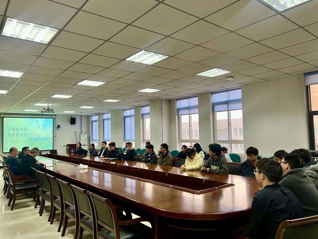 为精准做好2024届毕业生考研复试指导工作,促进学生对研究生复试各环节的全面了解,精准把握复试需求,增强复试信心,帮助学生提高考研上岸率,3月13日下午,计算机学院在行政楼504举行2024届考研复试指导交流会,计算机学院院长姚全珠、副院长许大炜,学生工作负责人崔佳楠、辅导员康乃馨以及2024届考研学生参会。