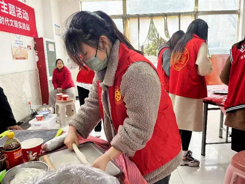 志愿者们来到旭景崇盛园后,开启了志愿服务包饺子活动,为了让老人都能吃上饺子,志愿者在小区设置了指引站,引导老人前往,遇到行动不便的老人,志愿者们主动上前搀扶,挨家挨户送到了家里面,确保老人们都吃上一口热气腾腾的饺子。