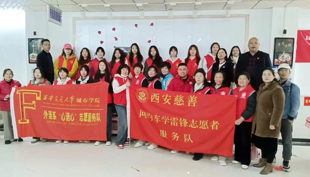 3月17日,外国语学院“心语心”志愿服务队携手郭明义爱心团队、西安慈善会网约车学雷锋志愿服务队一行来到旭景崇盛园开展“爱为宝”回收旧衣捐赠和包饺子活动,为老人送去温暖。