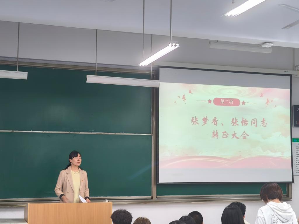 大会在庄严的国际歌声中拉开序幕。会议就张梦香、张怡两名同志的转正事宜做出讨论。经表决,一致通过张梦香、张怡两位同志的转正申请,按期转为中共正式党员。随后,会议对2023年度优秀学生党员与主题征文大赛获奖者进行表彰。认定党文婷等45名同志为优秀学生党员,认定王家琪等10名同学获得“青年守初心,城院学子颂芳华”主题征文大赛相关奖项。此次表彰有利于推动全体学生党员形成见贤思齐、争做先锋的良好氛围。