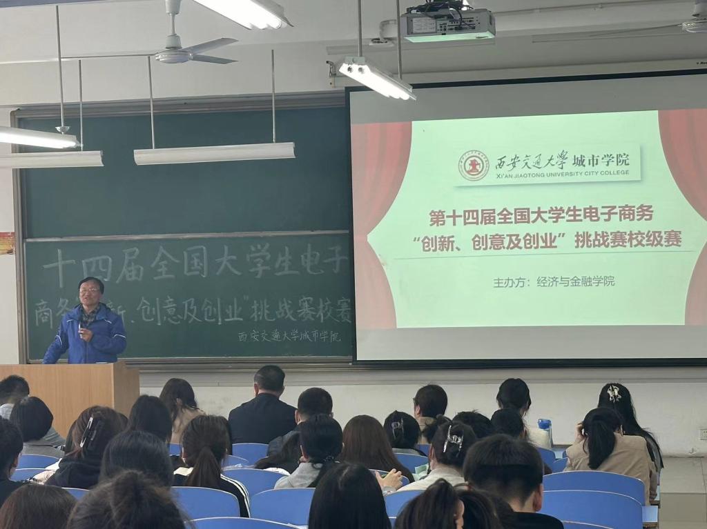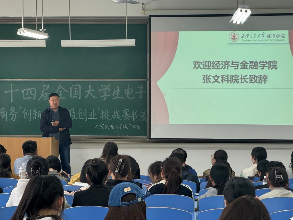 经济与金融学院于3月28日中午在经管楼213教室召开第十四届三创大赛开幕式。经济与金融学院院长张文科、副院长杨健全、副院长白丹、院长助理廉宇婷,中兴学院企业导师张成、金融系主任刘萍、财税系主任张娜及其他评委老师莅临本次开幕式,大会由盛晓冉同学主持。