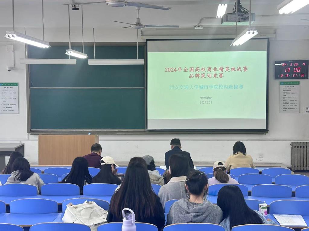 管理学院于3月28日中午在经管楼216教室举办2024年全国高校商业精英挑战赛品牌策划竞赛校内赛,常务副院长郭关科,工商管理系教师惠春丽、韩延庆担任竞赛评委。