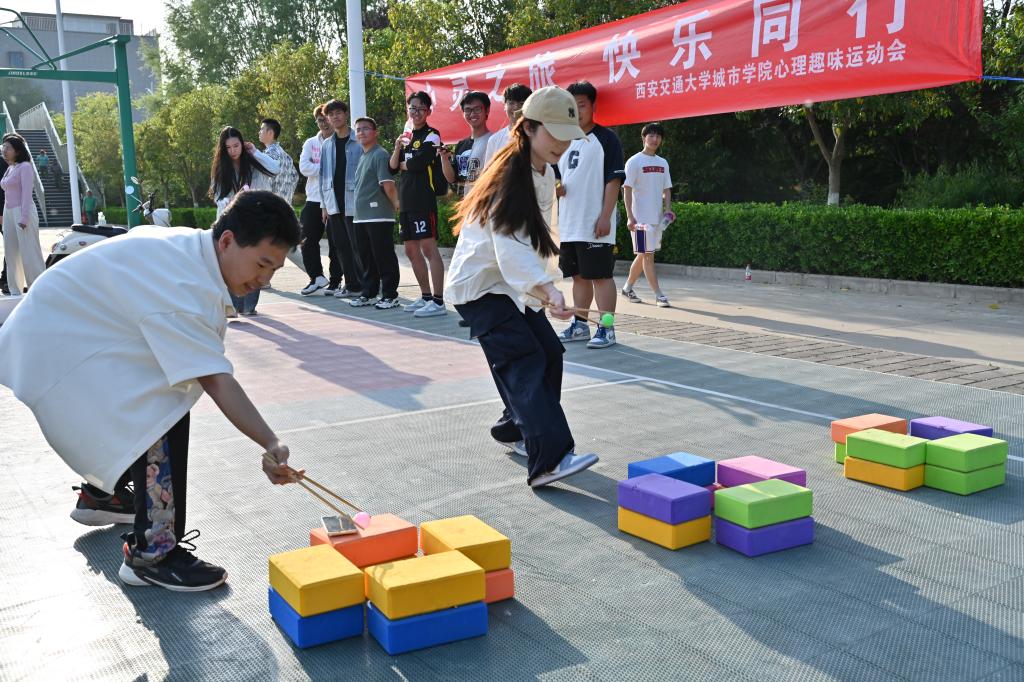 姚敏副处长表示,参与的同学们应本着“以体健心、以体强心”的宗旨,不断加强心理与运动的关系。本次活动分为集体项目和个人项目两部分,通过“摸石过河”“车轮滚滚”“合力搭建”“手脚并用”等系列活动,引导同学们体验勇于竞争的激情、顽强拼搏的决心、团结协作的力量以及顾全大局的智慧。