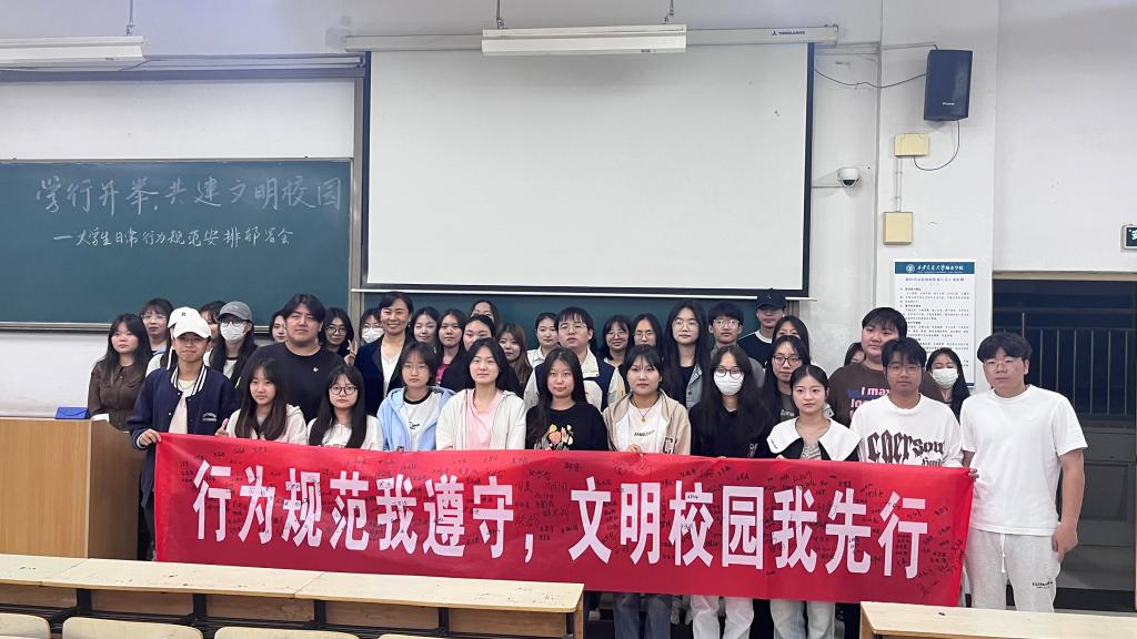 柯智航带领大家观看了校园不文明现象视频,结合学院学生的实际情况,从课堂纪律、宿舍管理、公共卫生、网络文明等方面倡议大家自觉遵守日常行为规范,并部署了后续将要开展的系列校园文明活动。他号召大家共同营造一个和谐、文明的校园环境。