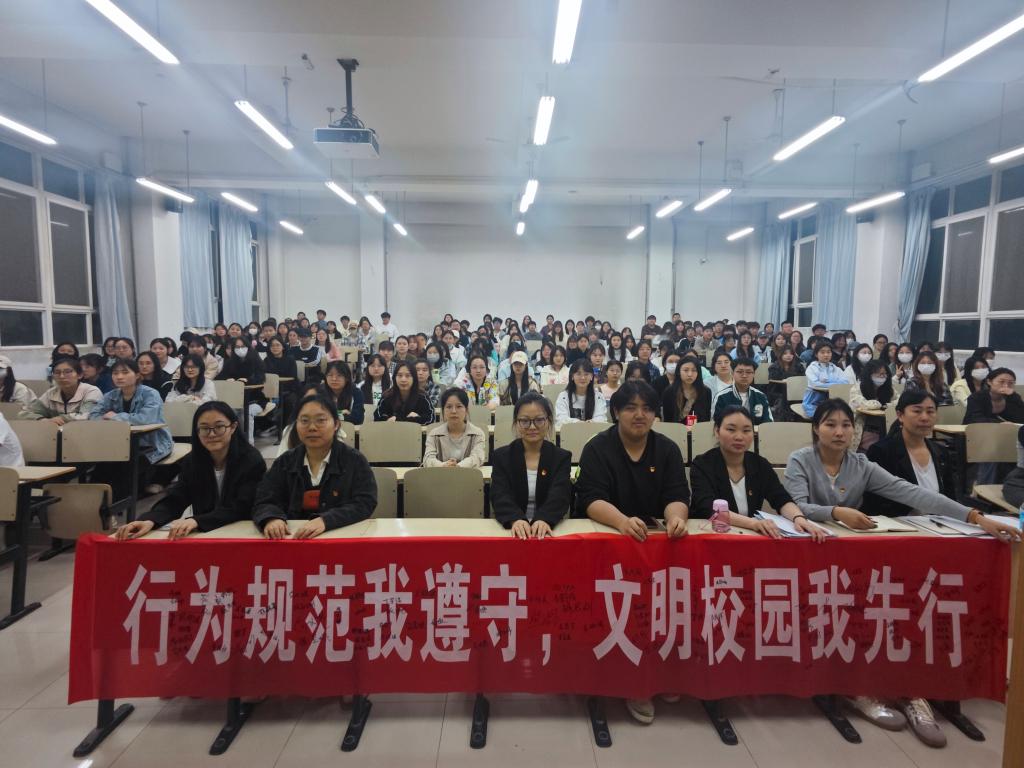 管理学院于4月29日晚在C200召开“学行并举,共建文明校园”大学生日常行为规范教育动员会。院长助理刘健,学工办李璐、刘连宏、张天源、康轲岚及管理学院全体学生党员、第40期入党积极分子、学生干部参加会议。会议由团工委书记柯智航主持。