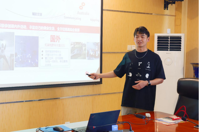 5月10日中午,yl7703永利官网国际合作与交流办公室邀请外国语学院2015级优秀校友李致远在行政楼608会议室为有意向参加中澳项目的十余名同学举办了中澳双学位项目经验分享会。