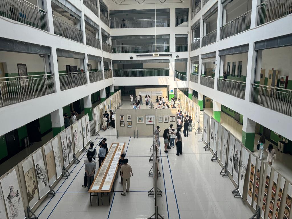 展览汇聚了艺术与设计学院所有学科学生的众多优秀作品,涵盖了中国画、书法、视觉传达设计、环境设计、动画五个艺术领域的作品。这些作品风格各异,有的充满创意与想象力,以独特的视角展现世界;有的细腻入微,传达出深刻的情感和思考。每一件作品都凝聚着学生们的心血和对艺术的执着追求。展览现场,校内师生们穿梭于各个展区,仔细品味着每一件作品。同时,学院还组织专业教师现场点评,深入解读作品的内涵和创作理念。