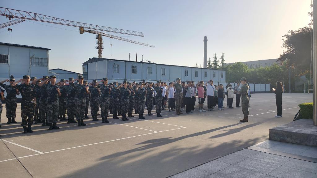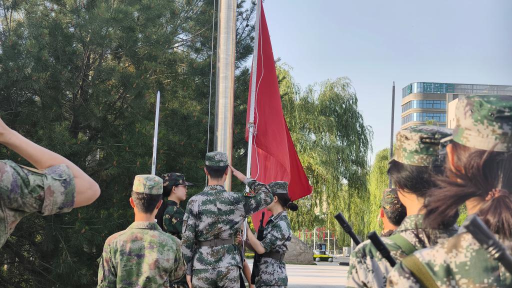 在全体同学的热切注目下,我校国旗护卫队迎着晨曦,迈着矫健整齐的步伐,姿态标准。当雄壮激昂的国歌响起,鲜艳的五星红旗迎风飘扬,全体师生肃立,目光如炬,注视着国旗沐浴晨光冉冉升起。