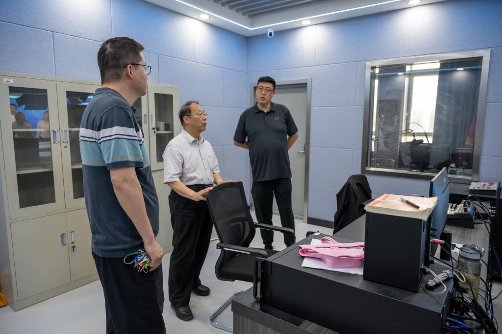 洽谈结束后,在李明德院长的带领下,龚继武参观了传媒学院的演播实验室、形体实验室和录播实验室。他对学院完善的实验设施和实践教学环境表示赞赏,并期待未来能够与学院在人才培养、实习实践等多个领域展开深度合作和与交流。