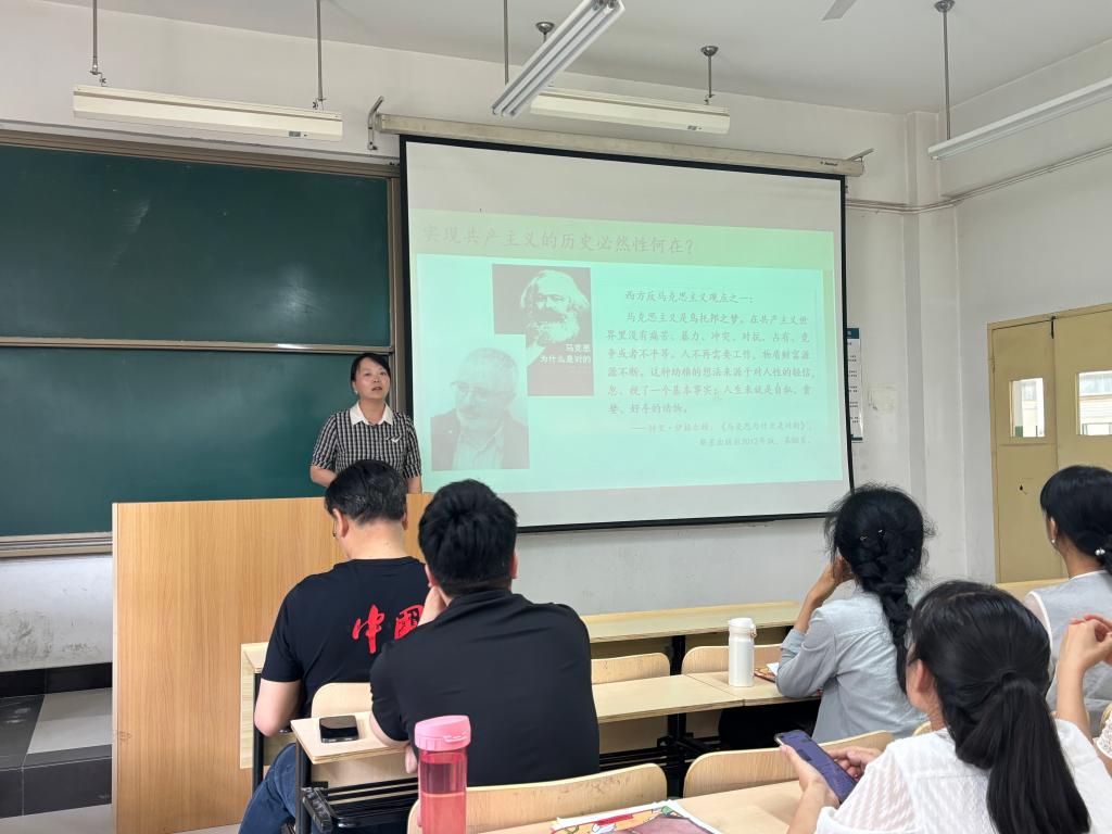本次教学展示活动由《毛泽东思想和中国特色社会主义理论体系概论》课程组张箐和《马克思主义基本原理》课程组赵燕两位老师进行授课展示。张箐围绕授课主题“科学评价毛泽东”,从历史前车之鉴、反对两种错误倾向和现实意义三个方面进行讲授。赵燕通过对“共产主义是乌托邦之梦吗?”“共产主义违背了人性吗?”“共产主义在遥远的未来吗?”三个问题的阐述,讲授了“实现共产主义的历史必然性何在”。