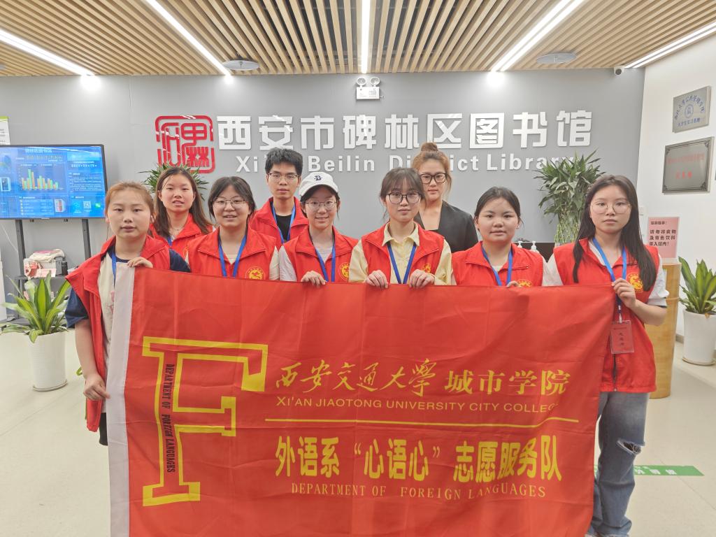 为进一步弘扬“奉献、进步、友爱、互助”的志愿服务精神,增强学生的服务意识,5月19日,外国语学院心语心志愿队走进西安市碑林区图书馆开展“书香沁心,服务暖行”志愿服务活动。