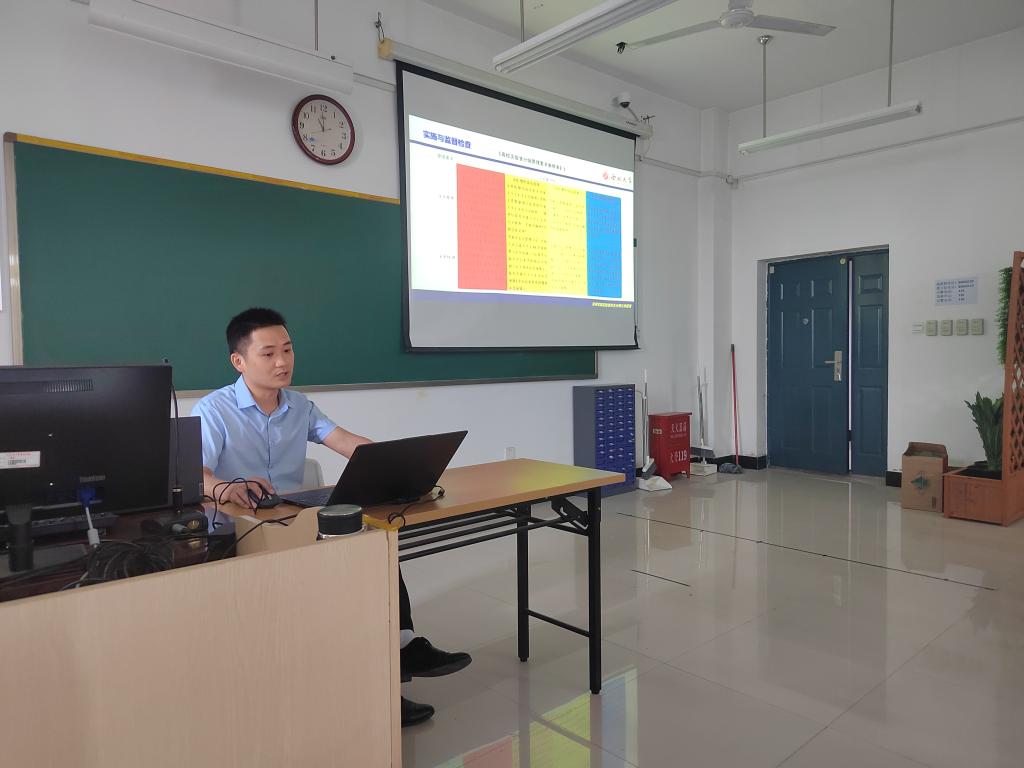 安全沙龙环节,电气与信息工程学院张永超、土木与建筑工程学院黎莹、机械工程实验教学中心张伟、护理与康复学院实验室李香香、物理实验教学中心刘会玲、外国语语言实验室杨博迪、管理实验教学示范中心杜欣等人员结合各自实验室特点,围绕“设备安全、环境安全、安全教育、危废处置”等一系列热点话题,各抒己见,畅所欲言,与冷鑫博士面对面交流探讨。冷鑫博士对大家的各类问题一一解答,并利用实验室现场环境进行现身说法,为实验室不断消除安全隐患,扎实做好安全工作确保师生人身安全提供了有效的指导。冷鑫博士向大家作题为“高校实验室安全分级分类管理”培训报告。随后,冷鑫博士与相关人员一起对电力电子技术实验室、机器人综合实验室、物理科技创新实验室进行了现场实地检查。