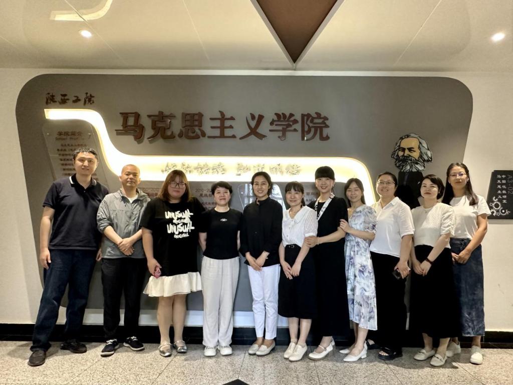 为学习借鉴思政课实践教学先进经验和成功做法,进一步深化思政课教学改革,5月24日上午,思想理论教学部一行7人在主任助理常媛、实践教学与平台建设专项工作负责人薛艺艺的带领下,前往陕西工业职业技术学院马克思主义学院进行调研交流。调研组一行受到陕工院马克思主义学院办公室主任陈晨、实训中心主任陈杜昊的热情接待。