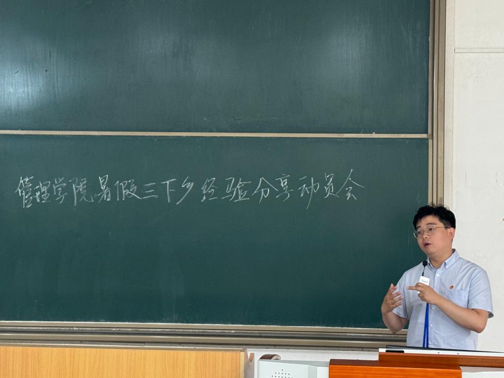 为深入推进暑期社会实践活动,增强学生对“三下乡”活动的认识与参与热情,管理学院于5月29日在E200开展了暑期“三下乡”社会实践经验分享动员会。管理学院团工委书记柯智航、学工办拓桦真参加会议,马毅琳、王若桐、郑立婷三位同学进行经验分享。