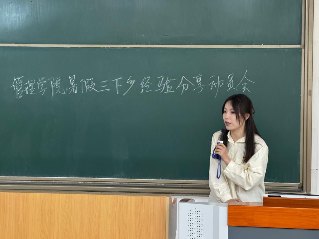 随后,2023年优秀“三下乡”团队领队马毅琳、王若桐、郑立婷三位同学进行经验分享。他们结合自身经历,从前期准备到项目实施,再到后期总结与反思,详细分享了往年参与“三下乡”活动的经验与感受。她们的分享不仅让同学们对“三下乡”活动有了更加深入地了解,也激发了大家参与活动的热情与信心。