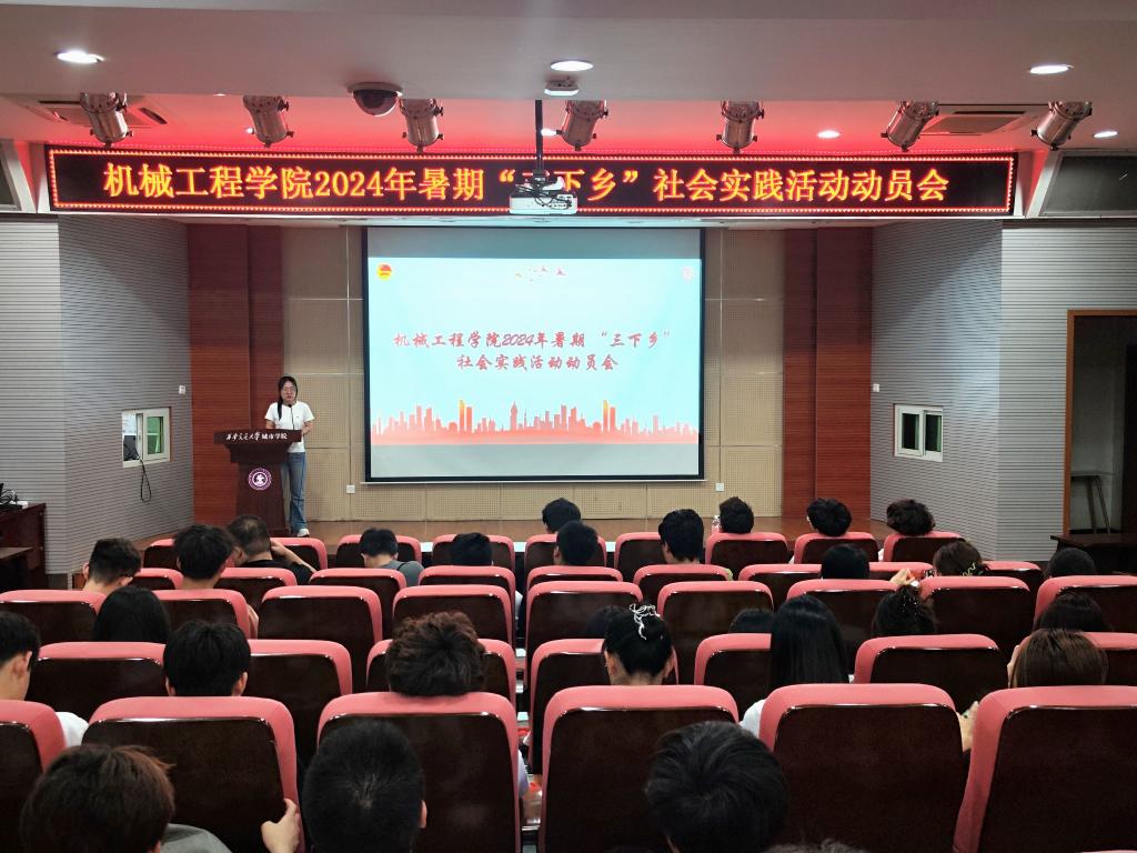 为进一步激发全体机械青年学生干部参与暑期三下乡社会实践的热情,让大家明确本年度学校关于暑期社会实践活动的相关内容与要求,保障暑期社会实践工作安全有序进行。机械工程学院于5月31日在F100开展了2024年暑期三下乡社会实践动员大会,机械工程学院团工委书记高荣、2023级辅导员童治杰、学生代表等100余人参加。此次动员大会由机械工程学院团工委书记高荣主持。