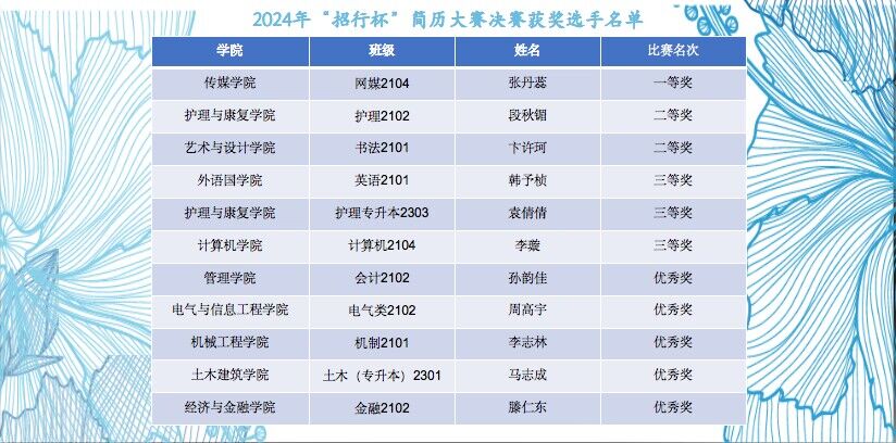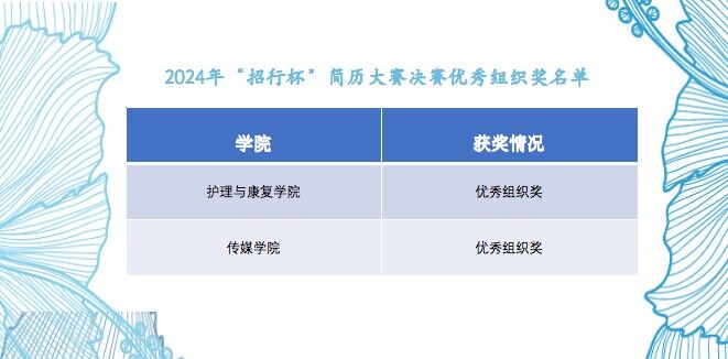 为帮助我校2025届毕业生做好就业准备,提升就业应聘过程中的基本技能,增强就业意识和就业能力。6月5日下午,由学生工作处主办,护理与康复学院协办的2024年“招行杯”求职简历大赛在教二报告厅举办。