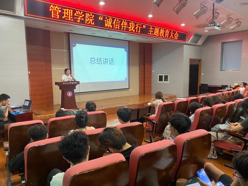 为深入贯彻国家资助育人政策,强化学生的诚信意识,提升资助育人的效果,管理学院于6月11日晚在F100开展了“诚信伴我行”的资助育人诚信教育主题活动。团工委书记柯智航、学工办刘连宏以及全体学生干部和党员代表参会,会议由柯智航主持。