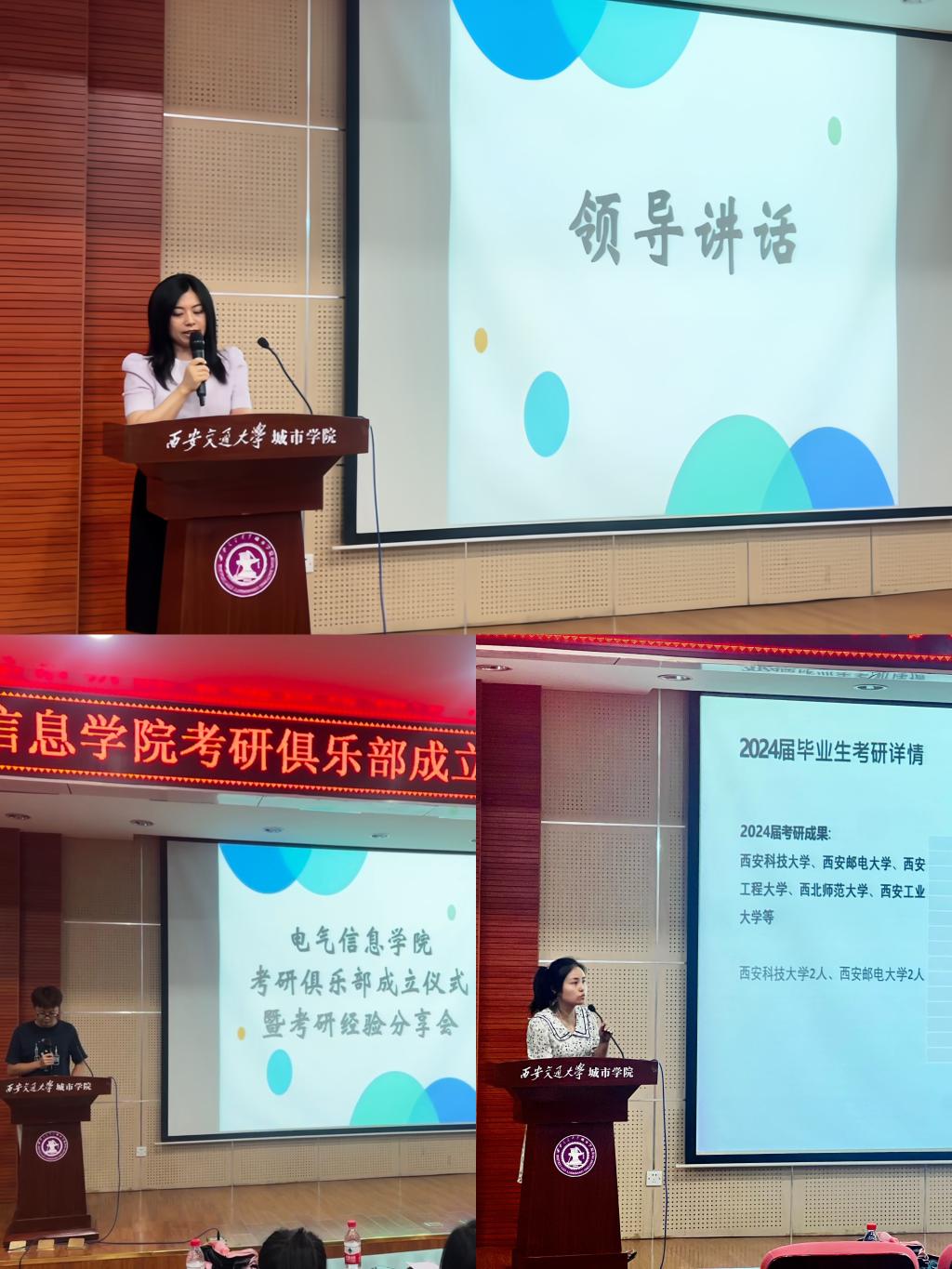 王姣对电气信息学院2022-2024届毕业生考研情况进行分析,通过我院每年考研数据,告知同学们要提前根据自己的情况做好规划,不盲目跟风,如果下定决心考研,那么要在未来的日子中,保持良好状态,认真学习。随后,刘晓明副院长宣布考研俱乐部的成立,她希望同学们能充分利用这个平台,相互交流、相互鼓励、共同进步,并对本次考研俱乐部的成立给予高度的期望与祝愿。