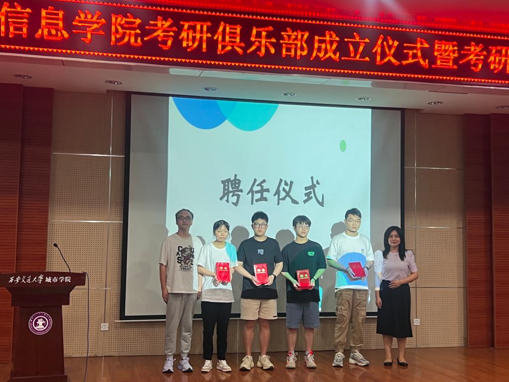 为提高电气信息学院考研录取率,进一步提升我院就业质量,为有志于考研的同学们搭建一个交流与学习的平台,助力他们在考研之路上坚定前行,6月20日,电气信息学院在教学楼F100报告厅开展考研俱乐部成立仪式暨考研动员会。电气信息学院副院长刘晓明、院长助理王姣、辅导员梁新雨及电气信息学院对考研有意向的全体同学共同参加本次会议。本次会议由苟晨戈同学主持。