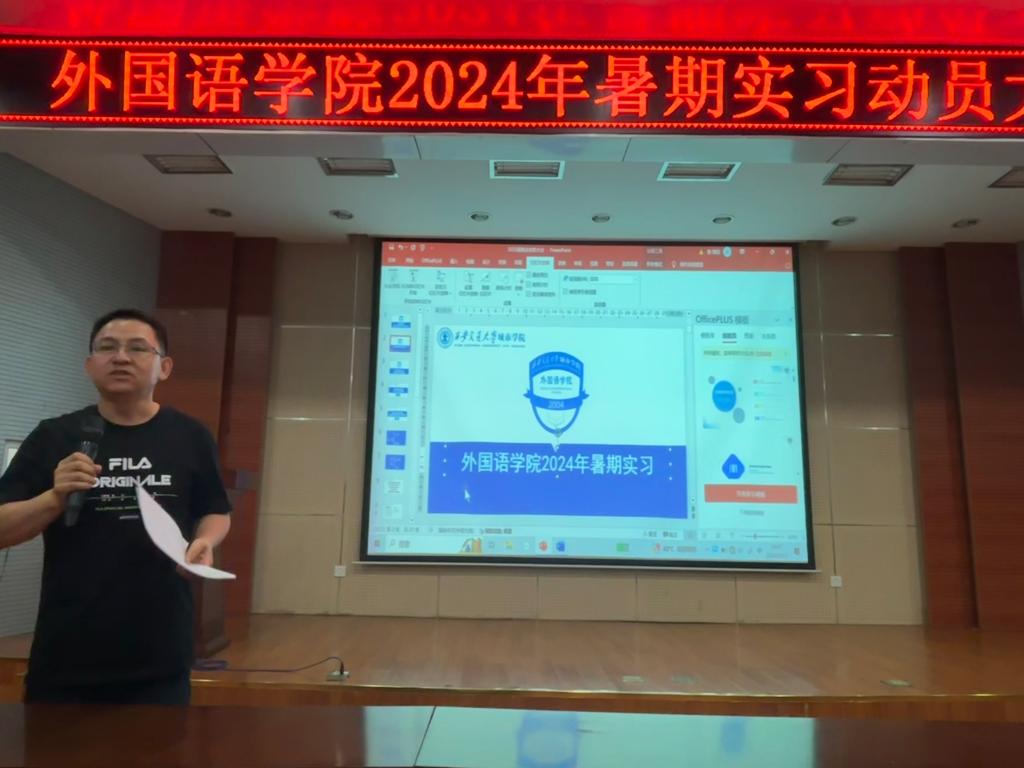 为做好2025届毕业生就业工作,了解当前就业形势、政策,更好地明确职业方向,切实提升就业竞争力,外国语学院于6月21日在F100召开2025届毕业生就业工作动员会。出席本次会议的有英语系副主任袁长普、张一帆,学生工作负责人吴丹,团工委书记韩蓉及2021级全体学生。