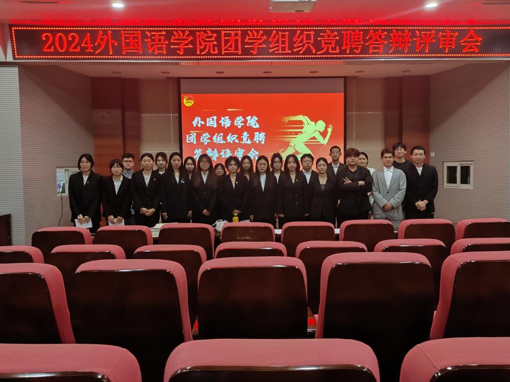为了进一步加强学生组织建设,展现团学干部的风采,提升团学组织的凝聚力和战斗力,外国语学院于6月21日在F100召开了团学组织竞聘答辩评审会。出席会议的有外国语学院学生工作负责人吴丹、团工委书记韩蓉、团工委副书记陈雨欣及主席团成员。