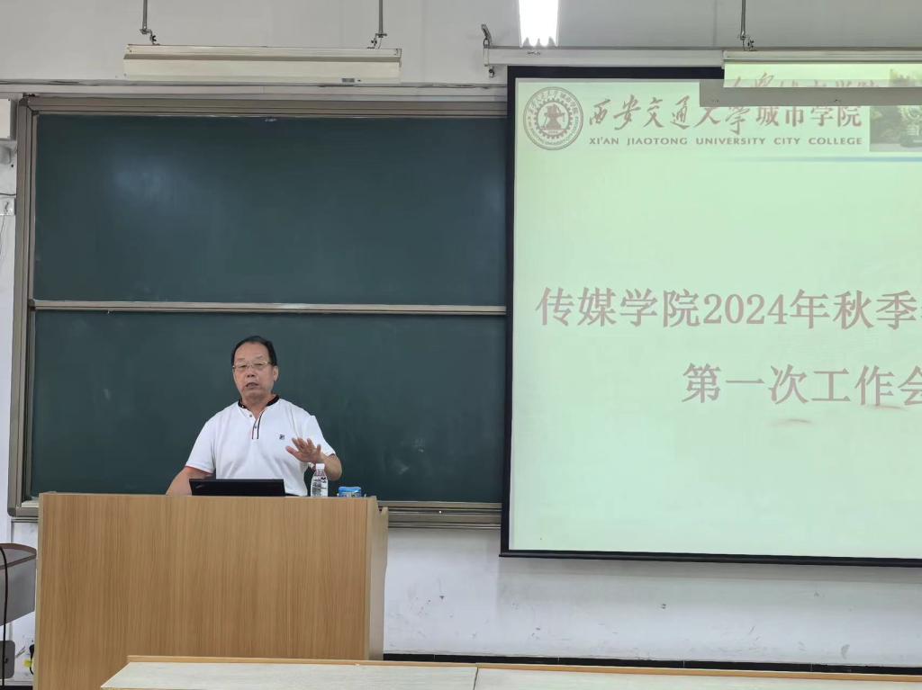 9月5日下午,传媒学院在教学楼D107召开2024年秋季学期全体教职工工作会议。李明德院长及全院教职工参加会议。会议由院办公室主任孙晓斌主持。