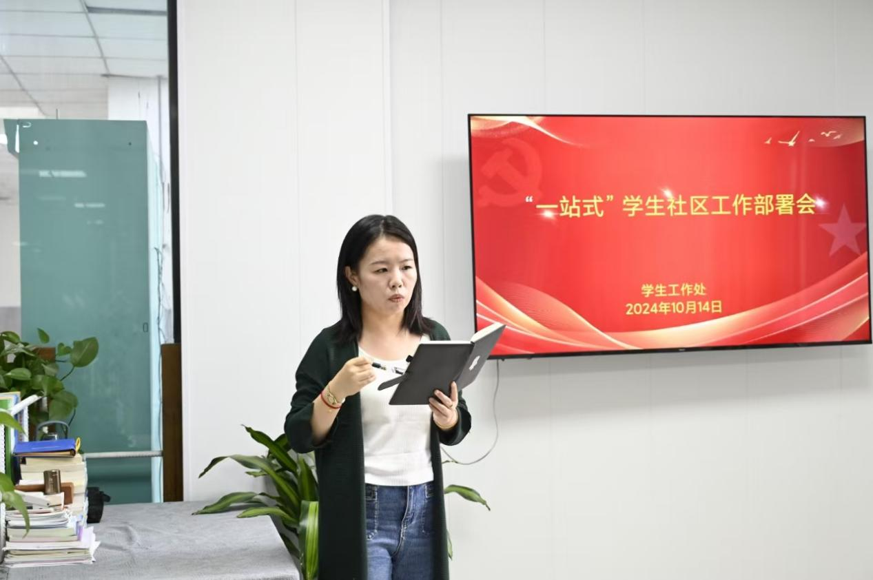 为持续推进“一站式”学生社区高质量建设,10月14日,学生工作处召开“一站式”学生社区建设现场办公专题会。学生工作处副处长张福全、学生处教育管理科副科长吴江菊、计算机学院学工负责人崔佳楠、土木建筑工程学院学工负责人李辉及社区全体网格员参加会议。