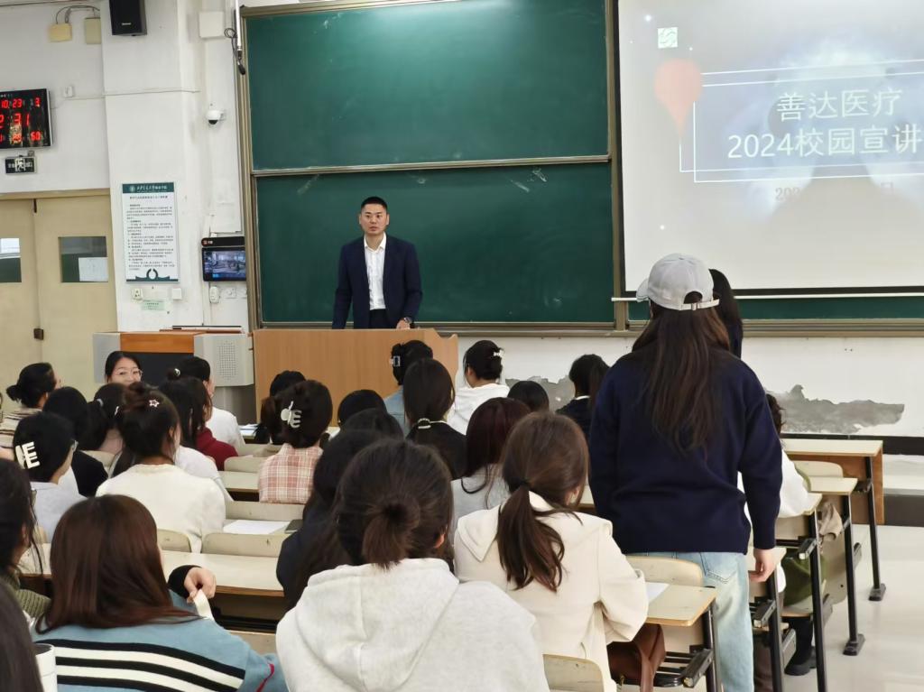 善达医疗集团负责人向学生介绍了医疗机构的基本信息和发展前景,肯定了学生的素质和水平,并与学生充分交流和沟通,使同学们深刻认识到了自己将来的工作方向和目标。