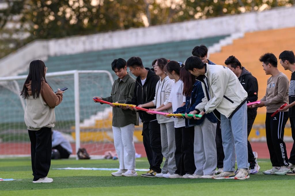 10月27日,在学生工作处心理中心的指导下,心理志愿者联盟在田径场开展了一场以"阳光心态,快乐减压"为主题的户外心理团体辅导活动,吸引了40余名同学的热情参与,为校园增添了一份别样的活力与温暖。