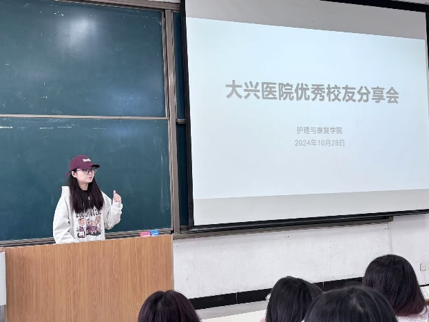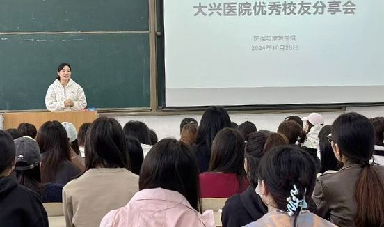 为进一步提高护理专业学生的专业技能与个人能力,拓宽学生视野。护理与康复学院于10月28日在教学楼F200开展了优秀校友座谈会。座谈会由董鑫行主持,大兴医院优秀校友张月莉、张玲玲主讲。